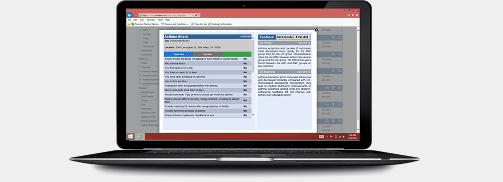 Currently, there are over 200 symptom definitions, indications, first aid instructions and care guides in our system. Using these clinical contents patients can report their problems along with relevant vitals, head shot, injured site shot and video.