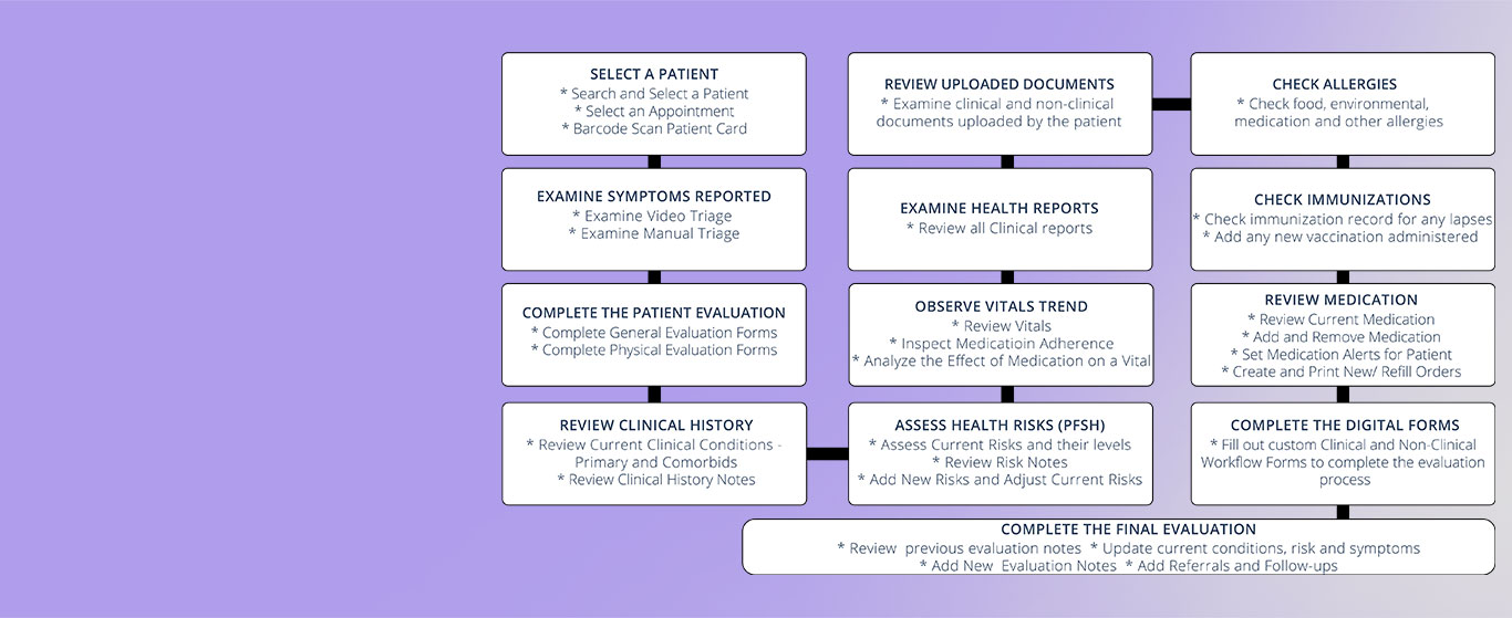 Use our 200+ clinical protocols and care advice to evaluate patient condition and symptoms. Use the pre-configured call-for-actions to redirect patients to 9-1-1 or ER or Urgent care or telecare or for an appointment with the doctor.